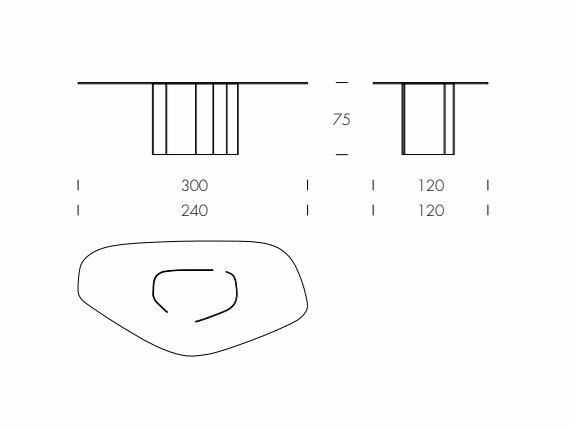 Ablos stalas – šviesos ir judesio išraiška, derinanti tvirtumą ir lengvumą. Pagrindą sudaro dvi išlenktos kalto stiklo plokštės, palaikančios asimetrišką stalviršį taip pat iš kalto stiklo. Šviesos atspindžiai kuria gyvą ir eterinę atmosferą, suteikdami interjerui elegancijos ir modernumo.
