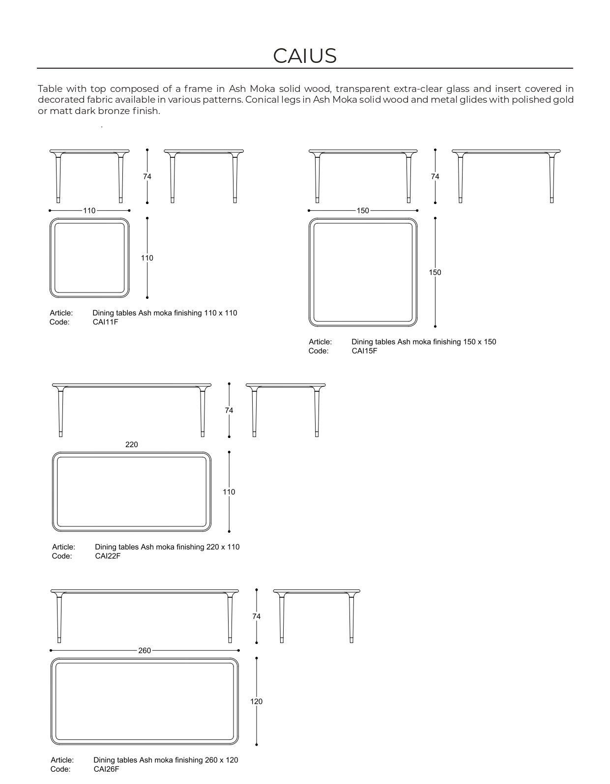 Caius stalas sujungia modernią eleganciją ir rafinuotą medžiagų meistriškumą. Natūralus marmuras tampa ne tik apdaila, bet ir tikra meno kūrinio dalimi, pabrėžiančia stalo viršaus grožį. Subtilios medinės, kūgiškos kojelės lengvai palaiko stalviršį, kurį jungia švelnios linijos. Aukso detalės ant kojelių galų suteikia kompozicijai prabangos ir stiliaus akcentą.