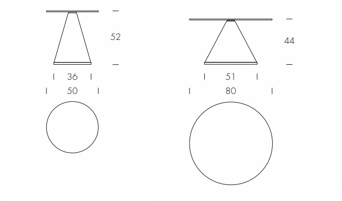 Iddu kavos staliukai pasižymi minimalistiniu, švariu dizainu ir modernia estetika. Du paprasti geometriniai elementai – milteliniu būdu dažyto metalo kūginis pagrindas ir apvalus stalviršis – sukuria harmoningą ir funkcionalų baldo siluetą.